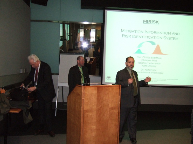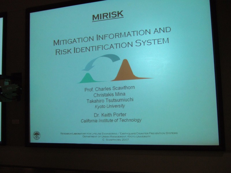 On the 4th of March 2007, Professor Charles Scawthorn, Christakis Mina and Takahiro Tsutsumiuchi visited the World Bank headquarters in Washington D.C. to present MIRISK to the people at the Bank. Following are some of the photos from Washington D.C. and the MIRISK presentation at the World Bank. Please click on the thumbnails for the full size photos.