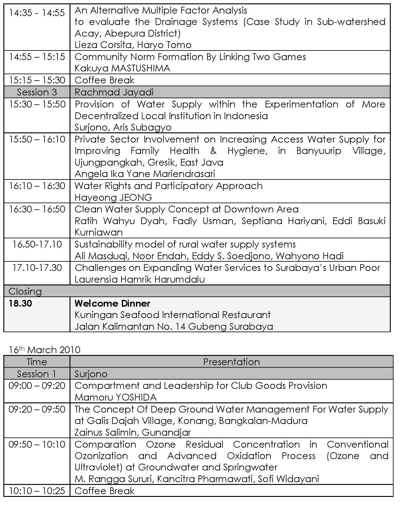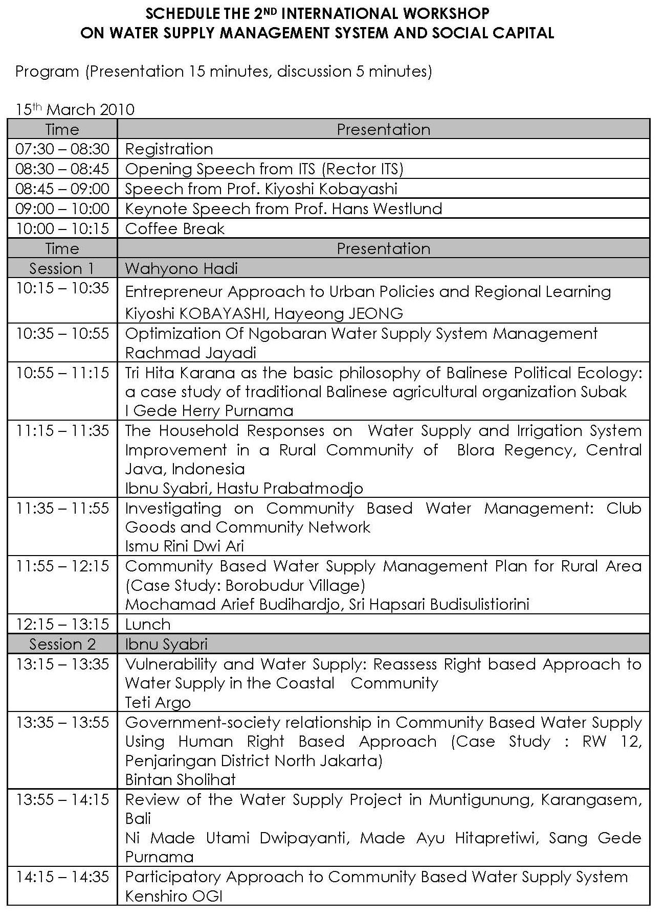 The 2nd International Workshop on Water Supply Management System and Social Capital