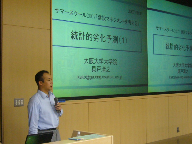 本研究室では,橋梁アセットマネジメントの基幹技術である,劣化予測,ライフサイクル費用評価およびインフラ会計に関する研究を行うとともに,これらの要素技術を有機的に体系化させたアセットマネジメントシステムの開発も積極的に手掛けている. 特に,劣化予測では,従来の劣化・損傷メカニズムの解明に基づく物理的手法とは異なり,目視点検データに基づく統計的手法に着目している.具体的には,橋梁のようにその健全度が離散的な多段階の評価点で与えられるケースを対象として,それらの劣化過程や,劣化過程の不確実性をモデル化するために,多段階のハザードモデルを開発し,さらにマフコフ推移確率を多段階ハザードモデルで表現することに成功した.この劣化予測手法は世界レベルでも類を見ない最先端の手法であり,統計的劣化予測の推計精度と実用性を飛躍的に向上させた.一方,ライフサイクル費用評価に関しても,マルコフモデルと整合的な形で割引現在価値法を開発するとともに,平均費用最小化法も開発した.もちろん,年間予算の平滑化という平均費用最小化手法の概念そのものには新規性はない.しかしながら,理論的モデルと整合的な形でこの手法を提案したのは,本研究室が初めてである.平均費用最小化手法は,実務面で有用性が高いことに加え,近年インフラ会計で着目されている繰り延べ維持補修会計と整合的であることも大きなメリットである.